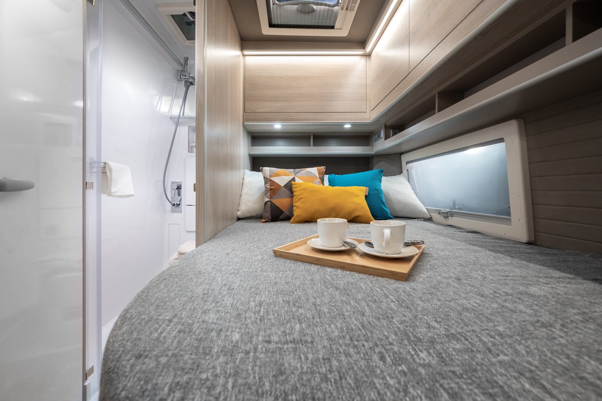 Met amper 6 m lang biedt de Globe-Traveller Explorer XS reis- en slaapplaatsen voor 2 personen en een comfortabele woonruimte. Door zijn compactheid is deze camper geschikt voor stedentrips of bijvoorbeeld reizen met de veerboot. De grote bagageruimte en grote ijskast van 90l en 7l diepvries laat u toe om lange reizen te maken. Uniek aan de XS serie van Globe-Traveller is de badkamer die achteraan de camper VAN wordt gebouwd. Hierdoor is het mogelijk een grotere leefruimte in het midden te bouwen.