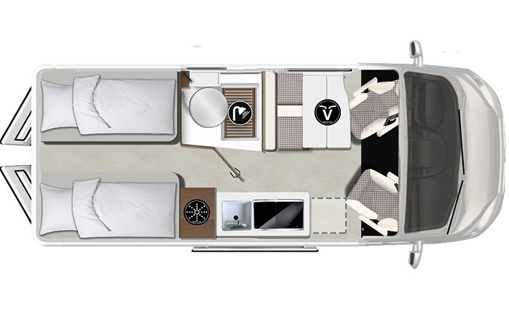 Design tot in elk detail. Dat siert deze 6,36m lange camper VAN. Bovendien vinden we hier twee comfortabele eenpersoonsbedden terug voor nachtelijk ultiem comfort.
