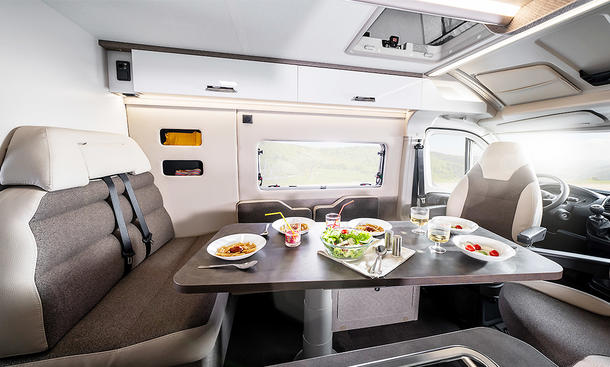 Met een lengte van slechts 5,99 meter slaagt de Davis 595 erin om een woonruimte met 5 zitplaatsen en een slaapruimte voor 5 personen te combineren met een ruime badkamer met aparte douche en uitneembare stapelbedden. Hiervoor is de Davis 595 altijd uitgerust met een hefdak. De woonruimte kan in een paar eenvoudige stappen worden omgebouwd van een gezellige L-vormige zithoek naar 5 zitplaatsen – of naar een extra bed voor de nacht.