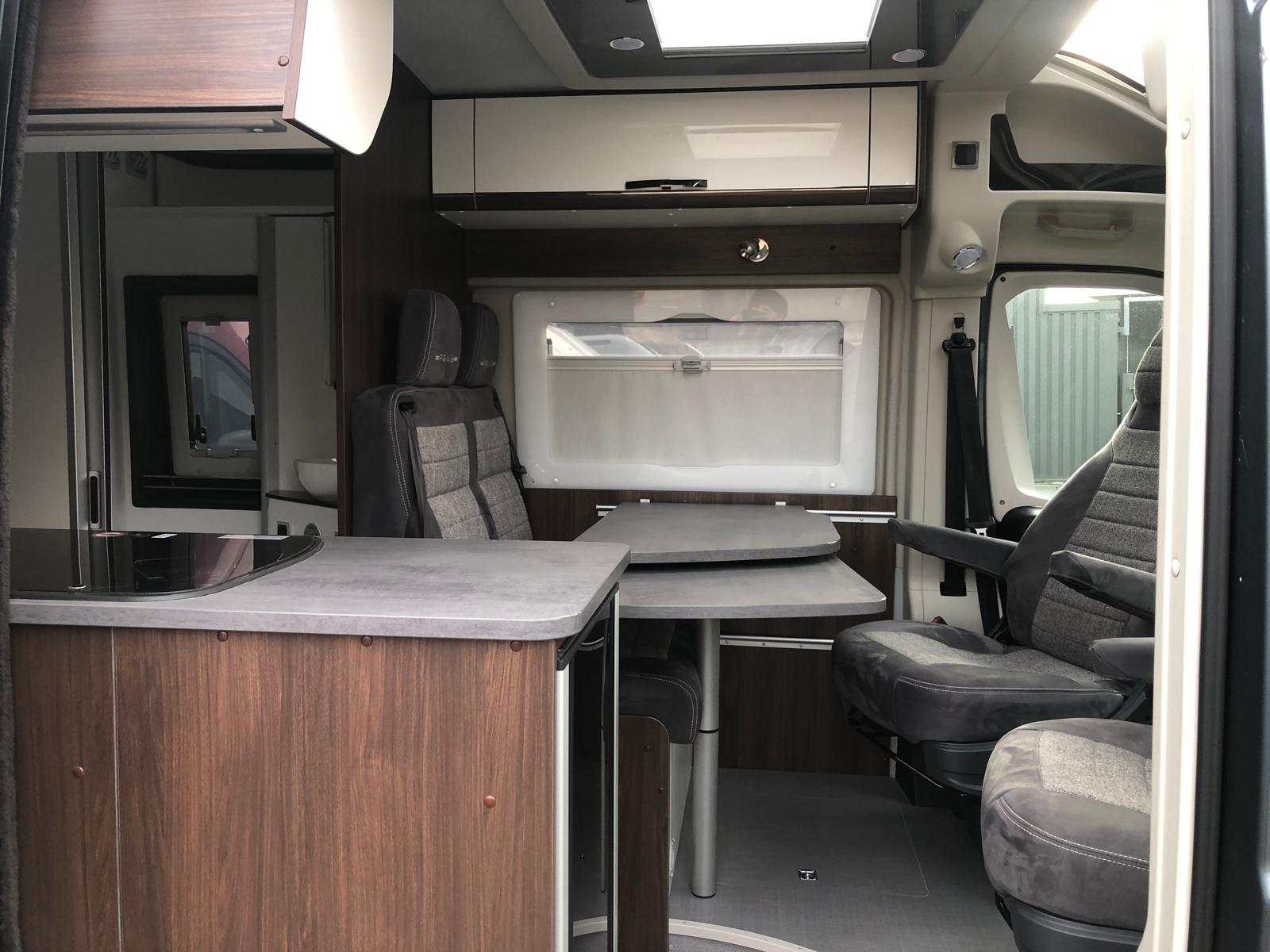 De Pössl Summit 640 Premium is een ruime wagen met een lengte van 6,36 m. Deze campervan heeft bedden in de lengte. De Pössl Summit-serie wordt gekenmerkt door een handig opbergvak voor jassen boven de cabine. De wagen biedt een open gevoel omdat de ijskast op de kop van het keukenblok zit. De keuken is ruim en biedt veel plaats om te koken. De zithoek met zijn uitklapbare tafel biedt plaats voor vier personen en de badkamer is voorzien van een zwenkwand, wat het gebruik optimaliseert.